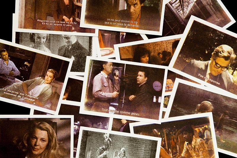 Questions/Réponses" is a collection of 100 postcards divided in two boxsets: 50 questions and 50 answers taken from movies made between 1936 and 2014 (all the images are original screenshots with subtitles). The cards can be used to create "postal dialogues" with friends, to create compositions/dialogues on a wall, or to play and improvise "cadavre exquis" of sentences.