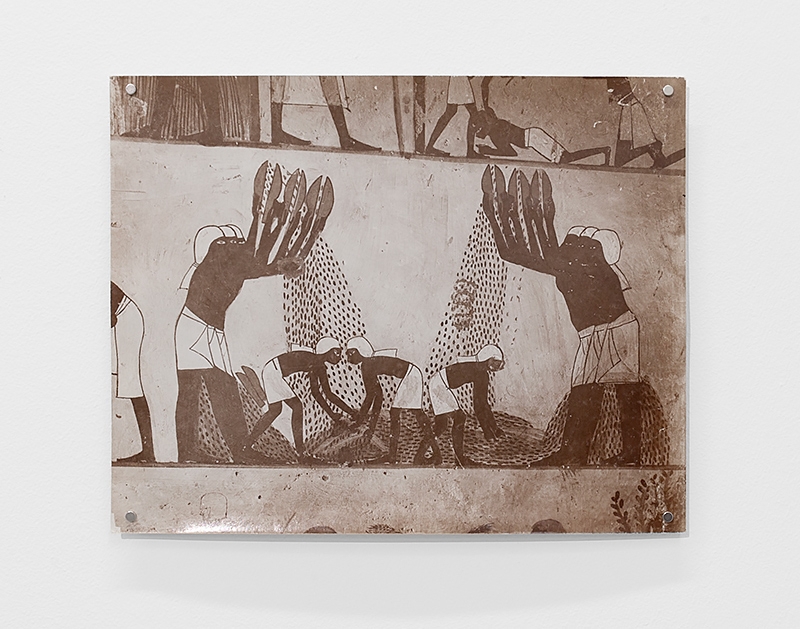 Ἓν τὸ πᾶν was created, has been kept and dried out. Like a gift from time or from a dream, it appears almost as if it has fallen from the image that hangs above it, a photograph of an Egyptian fresco representing the process of winnowing, where wheat is tossed into the air.