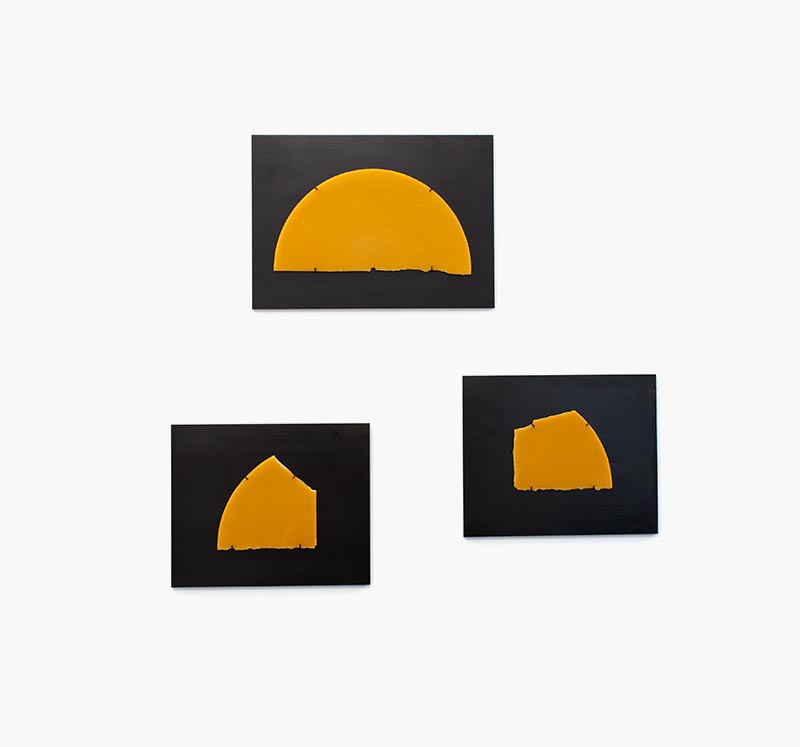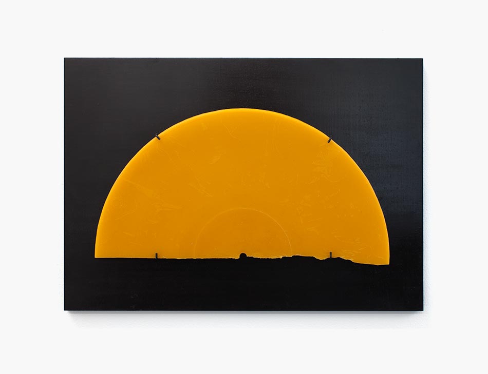 Disque 33t en cire d'abeille (morceaux), acier, plexiglas