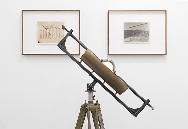 Historical photographs (c. 1880) of ancient buildings and of nature are marked with a scorched trace. In each case, this ‘scar’ was created with a heliograph, a meteorological instrument that registers solar intensity through ‘burning’ a piece of paper. A model of it was built especially for this project.