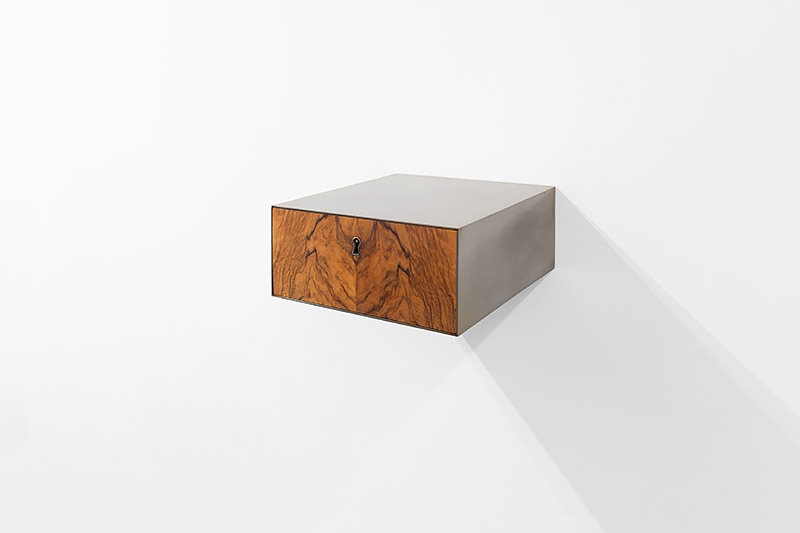 In Japan, there is a sacred mirror, strictly hidden from view. Each new emperor looks at himself in this mirror just once, at the moment of his coronation. This piece offers the same opportunity to see oneself for the first time. Yet one might also choose not to open the drawer: this locked box contains the possibility of a timeless innocence, an eternal virginity.