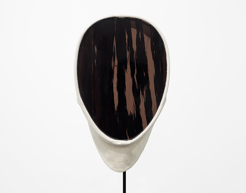 #2 (after John Dee) Masque d’escrime, obsidienne, soclage acier