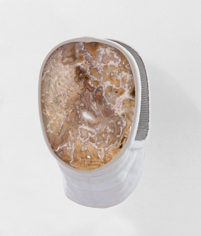 #3 Fencing mask, ‘parallel’ agate, steel plinth