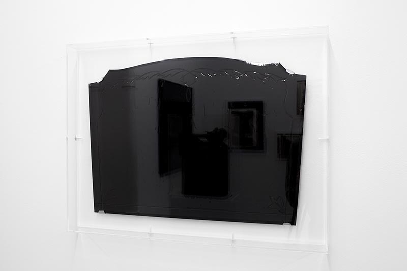 A mirror was covered in tar. This was motivated, through an oblique line of reasoning, by an awareness of the substance’s exceptional preservative properties: if tar perfectly preserves whatever it covers, wouldn’t the act of applying it to the mirror be enough to ensure the perfect preservation of my own reflected image? Once this has been done, the image and its light are obscured but a reflection strangely remains.