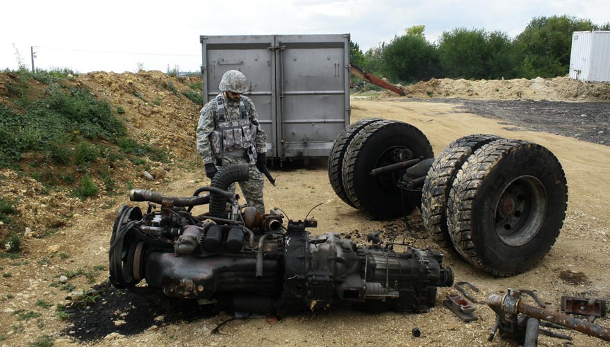 A Crack In The Ice, these photographs show a G.I. in strange situations, where his only enemy seems to be his own shadow. Like a child dressed up in a costume, he fights invented enemies and