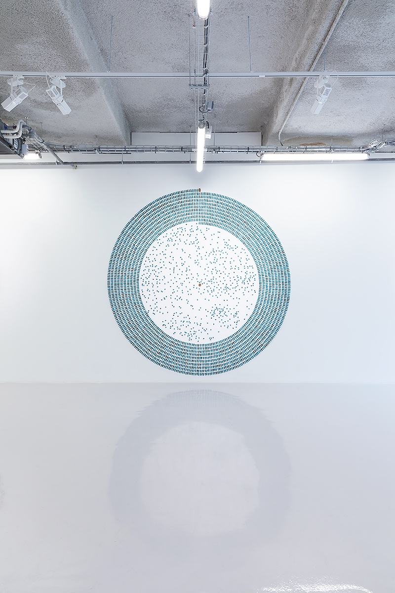 amulets (artist’s edition, self-enamelling Egyptian clay, stamped inscription ‘DEEP TIME’) 2 x 1.5 cm and 3.7 x 2 cm, installation Ø 280 cm