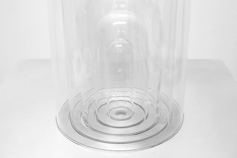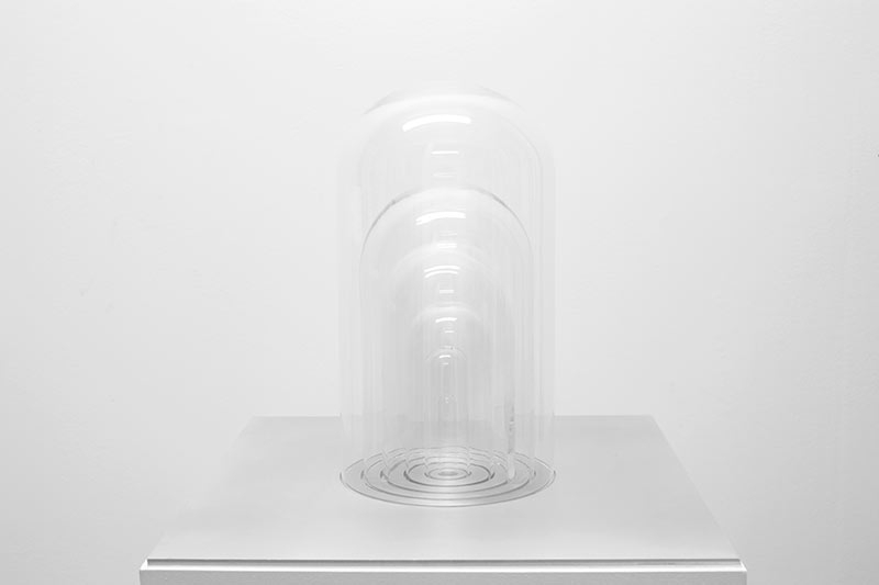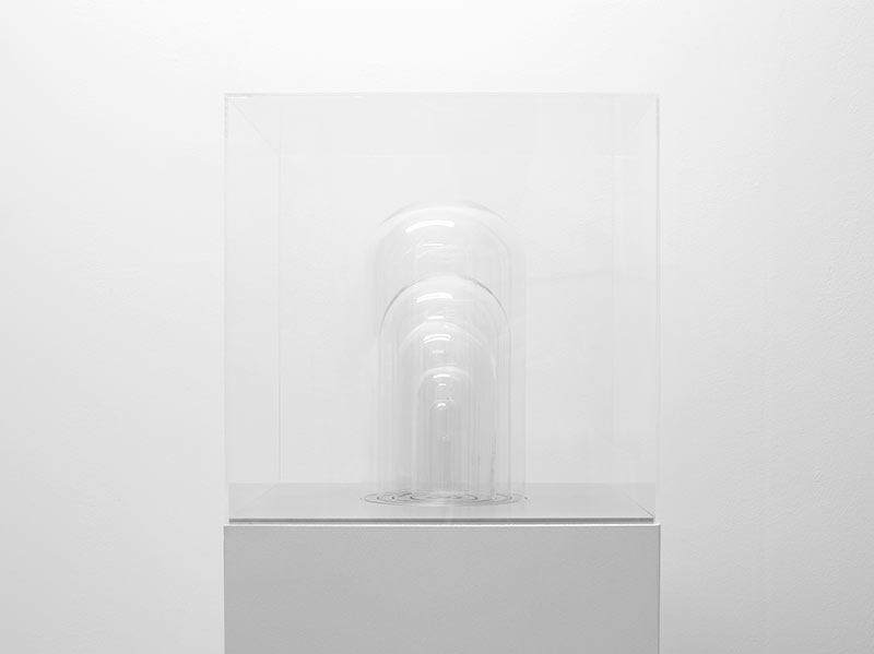 Here it is not an object that is protected behind the glass walls, but rather an inestimable and invisible resource: the central bell, sealed with lead, contains a single breath — a tiny attempt to preserve what cannot be preserved.