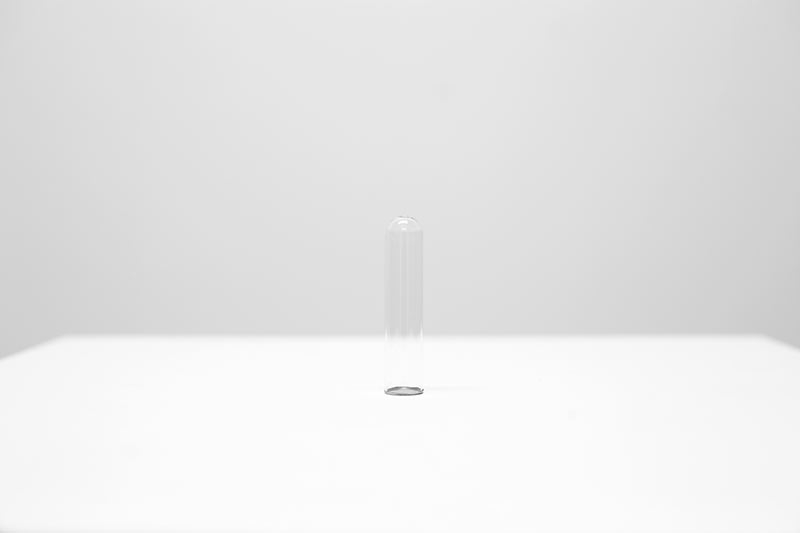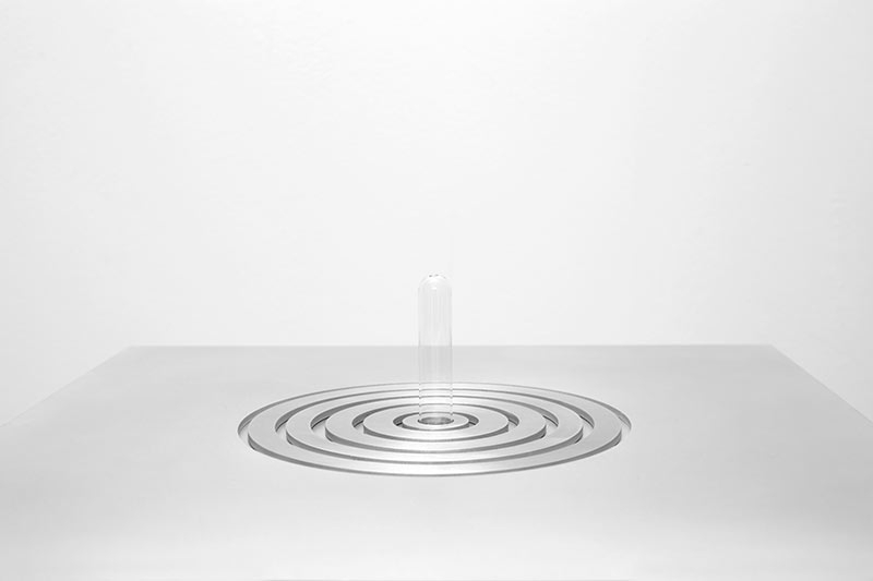 Blown glass (Italy), laboratory tubes, breath, lead, aluminium, plexiglas