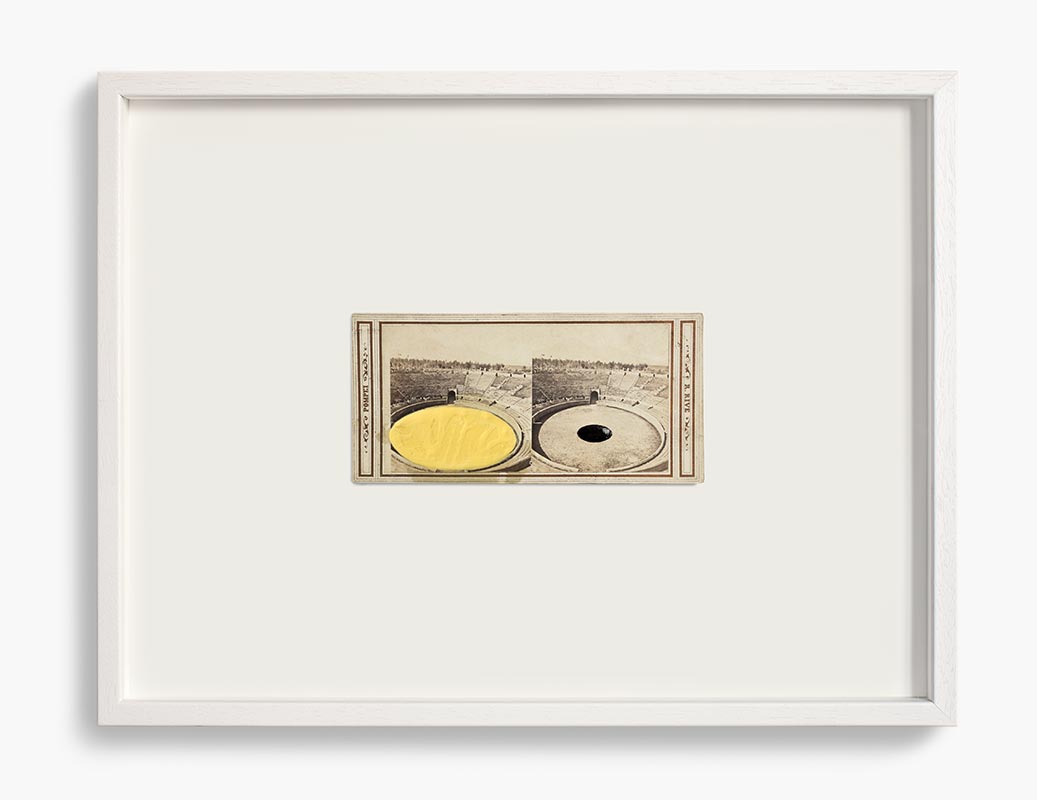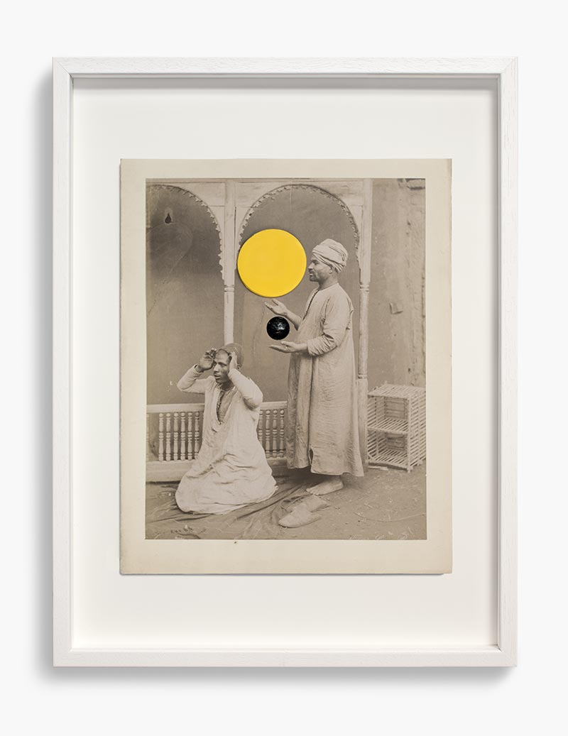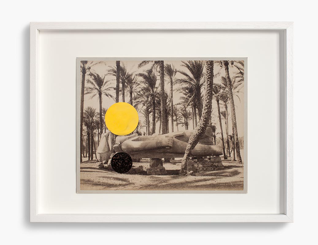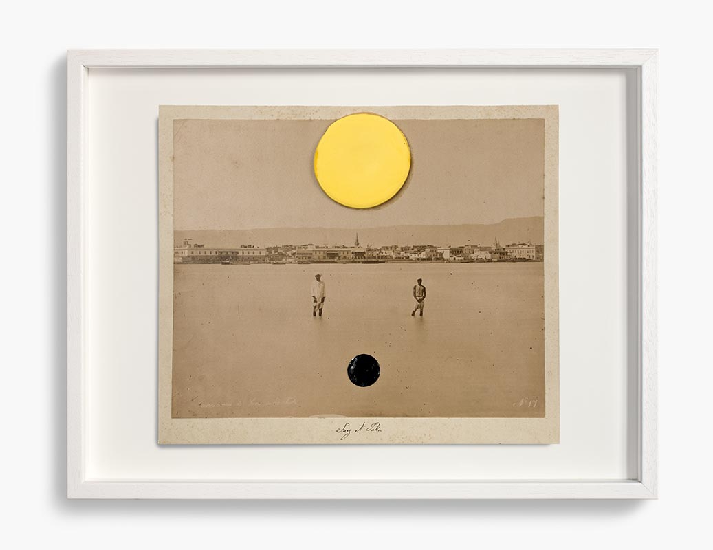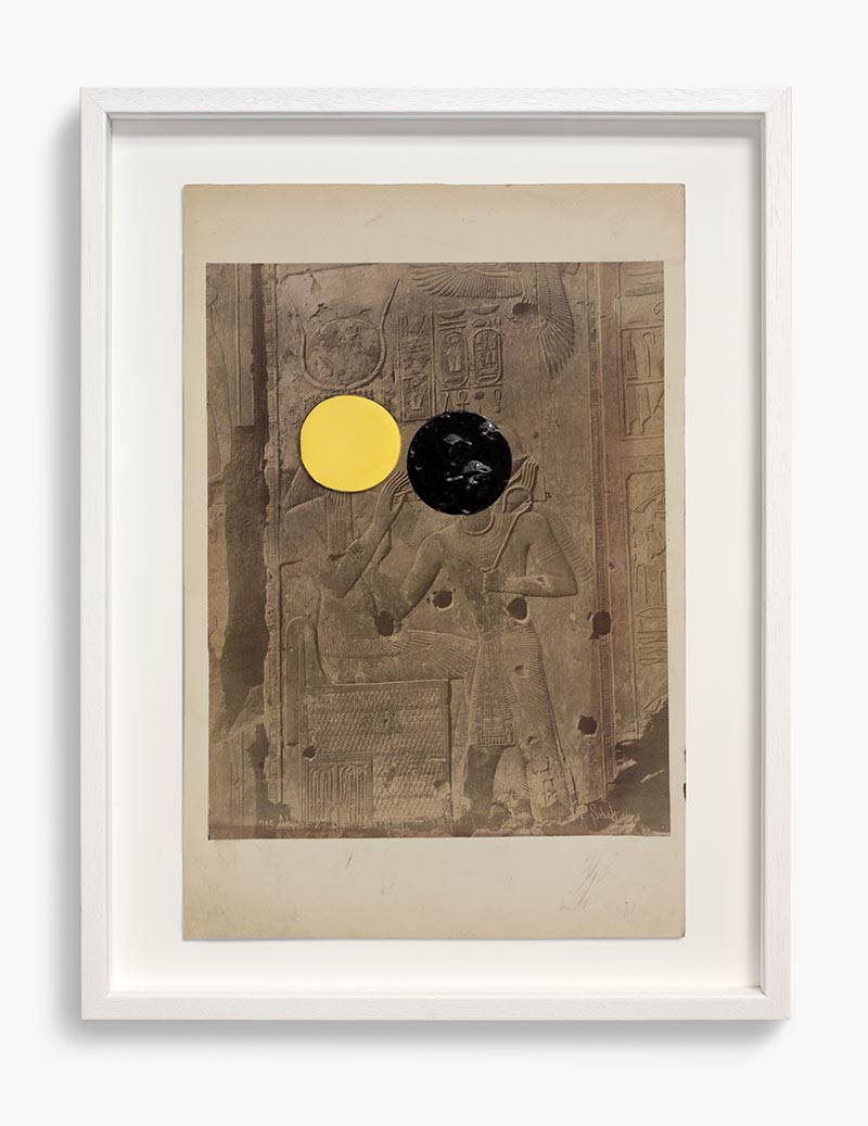 These photographs of Egypt, Greece and Italy (some of them anonymous, most of them signed) are typical of the period: archaeological sites, objects and statues from museums stand alongside genre scenes of daily life. Several layers of time are superimposed upon one another: antiquity, the moment the photo was taken, the present time. Yet what is really evoked here is a timeless present; the circles of tar and wax embody an energy both invisible and eternal, that of binary motion, rhythm and transformation, yin and yang.