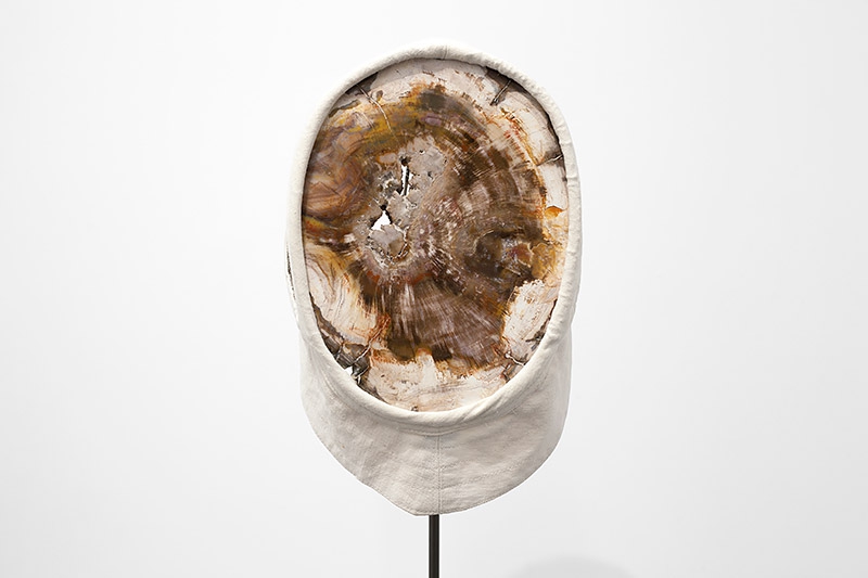 #1 Masque d’escrime, bois pétrifié, soclage acier